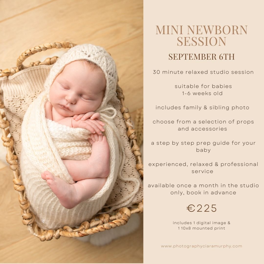 This Mini Newborn Session allows you to capture adorable images of your little Baby. Parents and Siblings are welcome to join in for a photo.